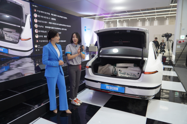 채팅창에서는 '트렁크 크기가 보고 싶으니 열어봐 달라'는 요구가 올라온다. 쇼호스트와 딜러가 이번에는 트렁크를 열어 골프백 크기와 친절하게 비교해 준다.