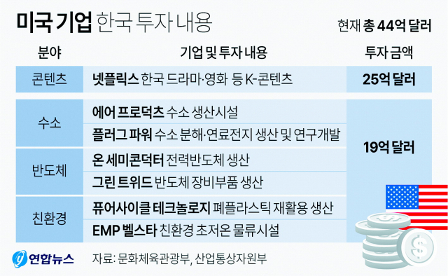 미국을 국빈방문하고 있는 윤석열 대통령이 참가한 가운데 이날 워싱턴 DC에서 열린 투자신고식에서 6개 미국 기업은 한국에 19억 달러를 투자하기로 했다. 이에 따라 수소(에어 프로덕츠, 플러그파워), 반도체(세미콘덕터, 그린트위드), 친환경(푸어사이클, 이엠피 벨스타) 분야의 글로벌 기업 6곳이 생산시설 등 공급망을 국내에 건설할 예정이다. 윤 대통령은 6개사 CEO에게 일일이 감사 인사를 표하며, 한국 정부의 지원 의지도 밝혔다.