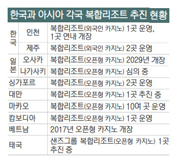 부산이 사행성을 이유로 뜸을 들이는 사이 아시아 국가, 특히 외국 관광객을 놓고 경쟁 관계인 일본은 최근 오사카의 복합리조트 지구개발계획을 최종 승인했다. 월드엑스포가 열리는 유메시마 인공섬 부지에서 2029년부터 오픈형 카지노를 포함한 복합리조트가 본격 가동에 들어간다. 일본은 이외에도 나가사키 등 최대 5곳에서 복합리조트 건립을 추진하는 것으로 알려졌다. 인천에서도 복합리조트 1곳 운영에 이어 연내 1곳이 추가로 개장한다. 인천의 경우 현재 외국인만 입장할 수 있는 카지노지만 관련 법만 개정되면 오픈형 전환은 하루아침에라도 가능한 상황이다.