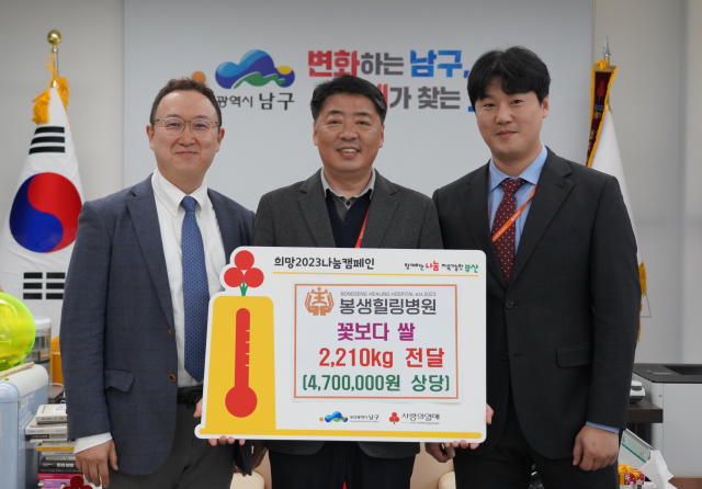 봉생힐링병원(병원장 최용석)은 지난 26일 저소득층을 위해 개원기념식에서 받은 2,210kg 상당의 쌀을 남구청(구청장 오은택)에 전달했다.