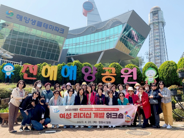 부산 수영구청(구청장 강성태)은 최근 경남 창원에서 수영구 여성단체협의회(회장 추인순) 회원 등 여성 지도자 30여 명이 참석한 가운데 ‘여성 리더십 개발 워크숍’을 진행했다.