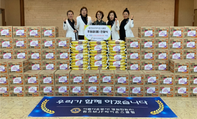 퀸즈MJF라이온스 클럽(회장 홍영미)은 최근 저소득가정을 위해 300만 원 상당의 쌀과 라면을 해운대푸드마켓(대표 정영희)에 전달했다.