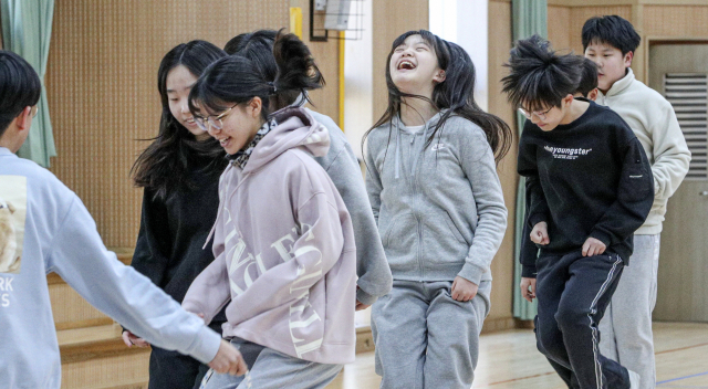 실내 마스크 의무가 해제된 이후 부산 한 초등학교에서 체육활동을 하는 학생들. 부산일보DB
