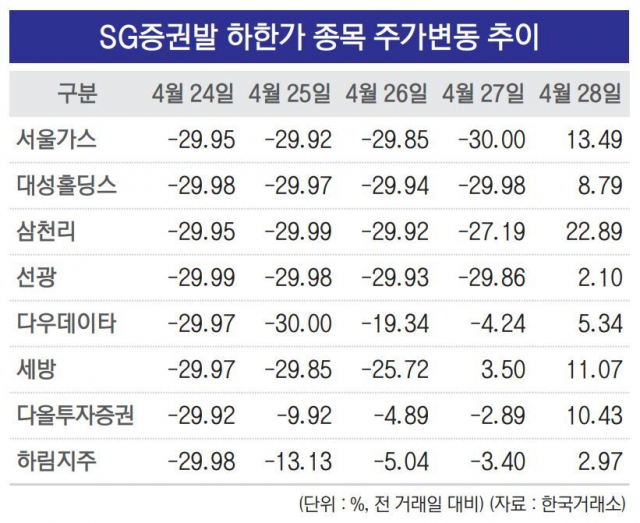 외국계 증권사 소시에테제네랄(SG)증권발 급락 사태가 코스피 시장에서 ‘4거래일 연속 하한가’라는 초유의 기록을 만들어 냈다. 금융당국이 사태의 진상을 파악하기 위해 본격 조사에 나섰지만, 개인 투자자들은 주가가 급락한 해당 종목을 매집하고 나서 피해가 더 커질 것이란 우려도 제기되고 있다. 특히 폭락 사태의 진원지로 지목된 장외 파생상품 차액결제 거래(CFD)에 대한 금융당국의 책임론이 빠르게 확산하고 있다.