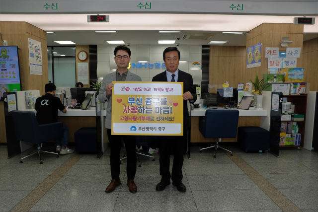 최진봉 부산 중구청장은 지난 2일 NH농협은행 부산지점을 방문해 경남 사천시에 고향사랑기부금 100만 원을 전달했다.