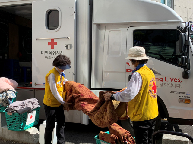 부산 동래구 명장2동 적십자봉사회(회장 차애환)는 최근 대한적십자사 이동 세탁 차량을 이용해 거동이 불편한 홀로 어르신과 결연 세대를 위한 사랑의 이동 세탁 봉사를 실시했다.