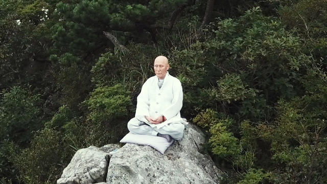 성각스님이 경남 남해군 망운산 정상에서 선수행을 위해 참선삼매에 들어 있는 모습. 성각선화보존회 제공