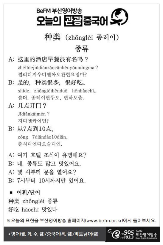 [관광 중국어] 종류