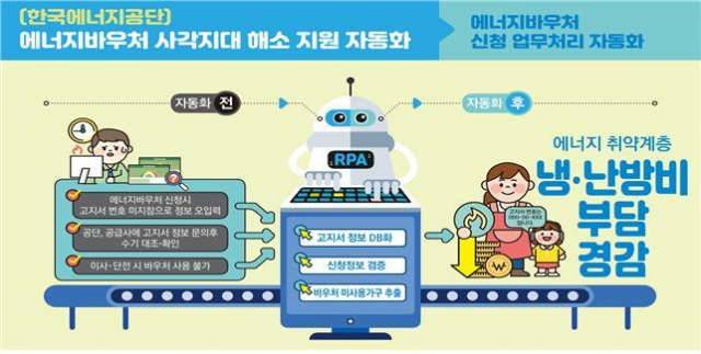 35억 원 예산을 투입해 사람이 일일이 처리하는 검색·분류 등 단순·반복 업무를 자동화하는 것으로, 한국에너지공단의 에너지바우처 사각지대 선별, 국가평생교육진흥원의 학점은행제 학습자 등록 및 학점 인정, 병무청의 병역 이행 행정 서비스가 자동화될 예정이다.
