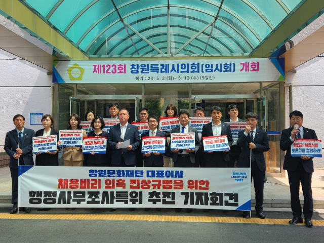 민주당 창원시의원단은 10일 오후 창원시의회 앞에서 “창원문화재단의 채용과 관련한 전 과정에 제기된 각종 의혹과 진상을 소상히 밝히고자 행정사무조사 특위를 추진한다”고 밝혔다.