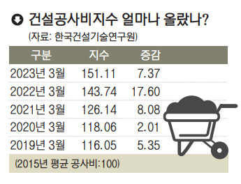 건설업계는 자금 경색이 심각한 상황에서 사업비 조정이 조기에 이뤄지지 않으면 일부 업체는 부도 위기에 직면할 것이라고 주장한다. 실제로 원자재 가격 상승은 건설업계에 '직격탄'을 날리고 있다. 건설공사에 투입되는 직접공사비를 지수화 한 건설공사비지수는 2020년 3월 118.06에서 2021년 3월 126.14, 2022년 3월 143.74, 올 3월 151.11을 기록하는 등 최근 3년 새 크게 뛰었다. 건설업계는 체감상 지난 3년간 자재가격이 40%가량 올랐다고 토로한다. 이에 2~3년 전 계약대로 공사를 진행할 경우 적자가 눈덩이처럼 불어날 수밖에 없는 상황이다. 부산도시공사는 지역의무공동도급 규정에 따라 100억 원 이상 종합공사에 지역 업체가 최소 49% 이상 참여하도록 해 대다수의 부산 업체가 민간 참여 공동주택 사업을 하고 있다.