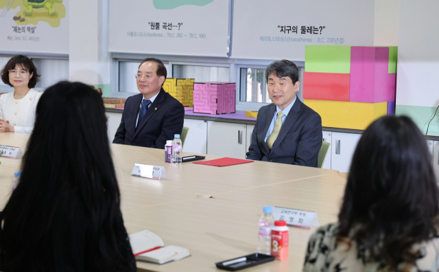 이주호 부총리 겸 교육부 장관이 11일 오후 부산 북구 덕천중학교에서 교사들과 간담회를 갖고 있다.