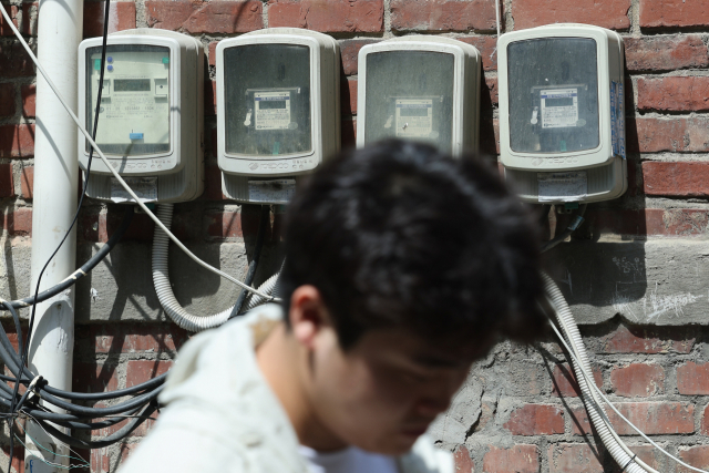 정부가 전기·가스요금 인상 방안을 발표한 15일 서울 시내 주택가에 전력량계가 설치돼있다. 전기·가스요금은 내일부터 각각 kWh당 8원, MJ당 1.04원 인상되며 소급 적용되지 않는다. 연합뉴스