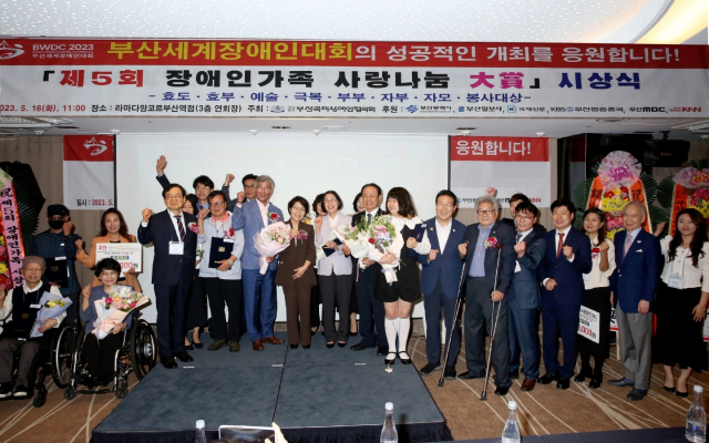 (사)부산국제장애인협의회(회장 강충걸)가 주최하는 제5회 장애인가족 사랑나눔 대상(대회장 정종원) 시상식이 16일 부산 동구 라마다앙코르호텔에서 열렸다.
