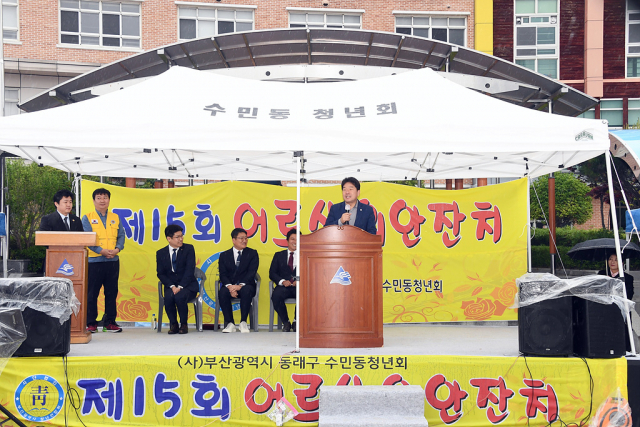 부산 동래구 수민동청년회(회장 문재만)는 최근 5월 가정의 달을 맞이해 낙민초등학교에서 ‘제15회 수민동청년회 어르신 위안 잔치’를 열었다.