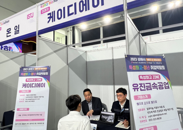 이번 박람회는 김해 지역 미래차・의생명 분야에 특화된 직업교육 혁신지구 관련 기업과 관계 기관 등 50여 개가 참가해 김해 지역 4개 특성화고 학생 500명에게 취업 상담과 채용 면접 기회를 제공했다. 이날 행사에는 김해시와 김해교육지원청에서 주관한 청년 박람회와 중학생 직업 체험도 병행했다.