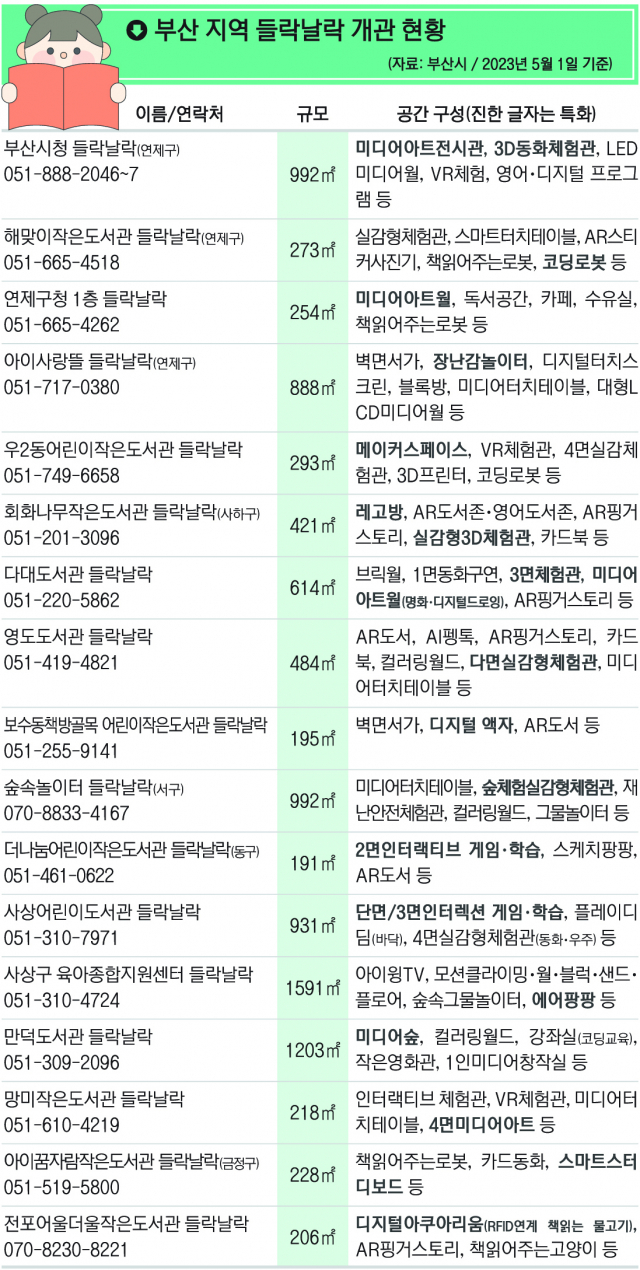 지난해 9월 첫선을 보인 부산 미래형 공공 놀이터 ‘들락날락’은 현재 17곳이 개관했으며 내년 상반기까지 47곳이 추가로 문을 열 예정이다. 어린이들과 가족을 위한 독서와 놀이, 학습 공간으로 자리매김하고 있다. 들락날락 1호인 ‘부산시청 들락날락’ 전경. 부산시 제공