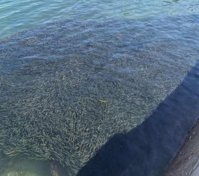 경남 통영시 한산면 용초도 해안의 정어리 떼. 부산일보DB