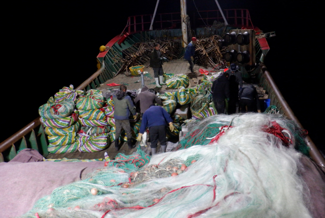 서해어업관리단 국가어업지도선(무궁화2호)은 지난 15일 충남 태안군 격렬비열도 인근 배타적경제수역에서 어구를 허용량을 넘겨 실은 중국 자망어선을 나포했다. 갑판에 실린 초과 어구 모습. 해양수산부 제공