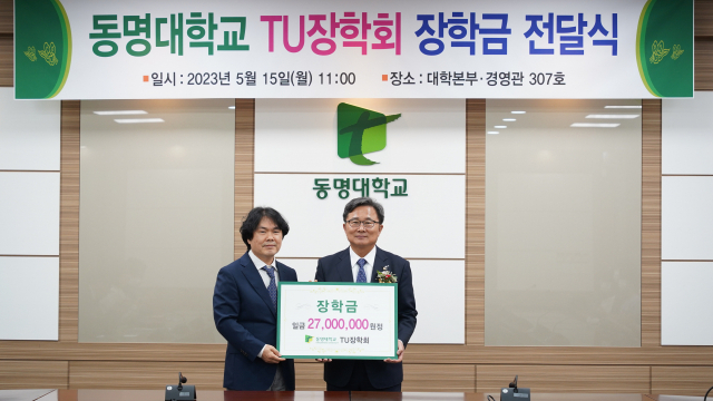 동명대학교 TU장학회(회장 정원준 동명대 시각디자인학과 교수)는 스승의날인 지난 15일 대학본부경영관에서 전호환 총장 등이 참석한 가운데 재학생 18명에 총 2700만 원의 장학금을 전달하는 행사를 가졌다.