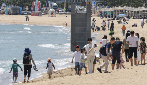 초여름 날씨를 보인 5월의 광안리해수욕장을 찾은 시민들. 김종진 기자 kjj1761@