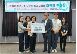 전달식에는 신생윤리연구소 모윤회 동래구지부 김유금 회장과 회원들이 함께 참석해 후원금을 직접 전달했다.