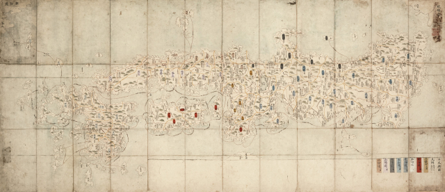 공재 윤두서가 18세기 초에 모사한 아주 상세한 일본 전도인 보물 ‘일본여도(日本輿圖)’. 부산박물관 제공