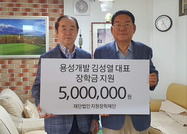 (주)용성개발(대표 김성열)은 최근 부산 남구 용호동 용성개발 사무실에서 어려운 학생들을 돕기 위해 (재)지원장학재단(이사장 정진갑)에 장학금 500만 원을 기탁했다.