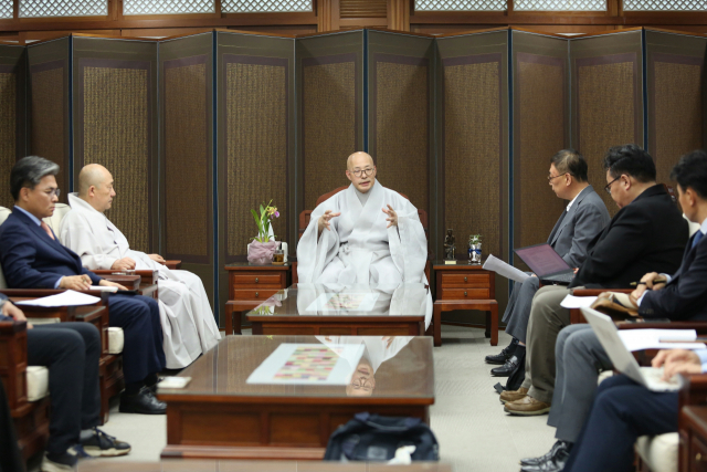 한신협 공동취재단과 만난 조계종 총무원장 진우 스님. 이무성 매일신문 사진객원기자
