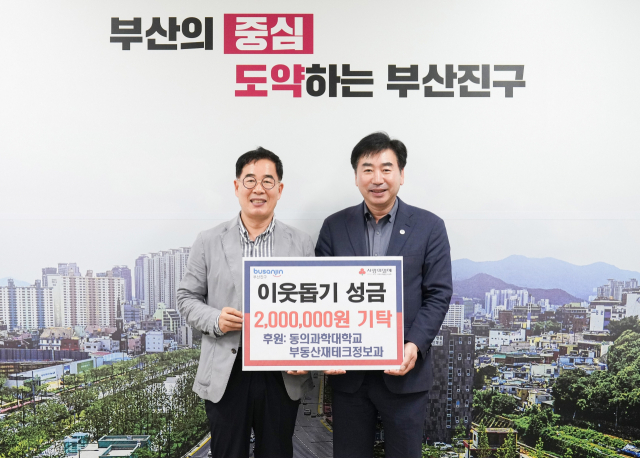 부산 부산진구청(구청장 김영욱)은 지난 19일 동의과학대학교 부동산재테크정보과(학과장 장형준)에서 이웃돕기 성금 200만 원을 기탁했다고 밝혔다.