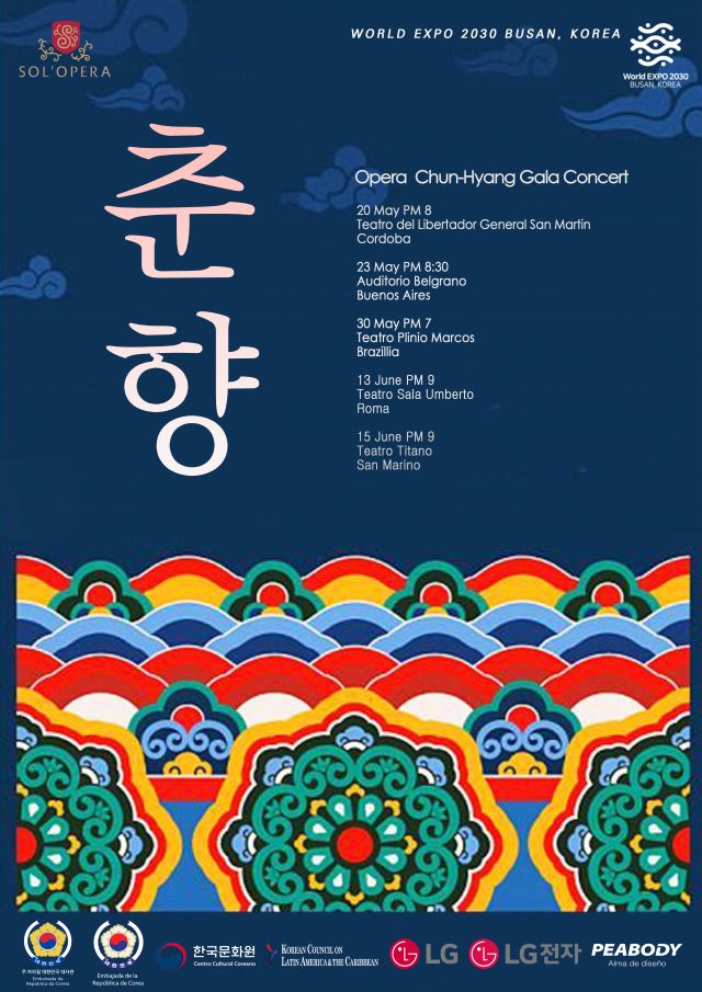2002년 12월 부산에서 발족해 전국적인 오페라단으로 성장한 솔오페라단(단장 이소영)이 2030 부산월드엑스포 유치 홍보를 겸해 지난 20일(현지 시각)부터 오는 6월 15일까지 오페라 ‘춘향전’으로 남미와 유럽 5개 극장에서 연주하는 월드투어를 하고 있다.