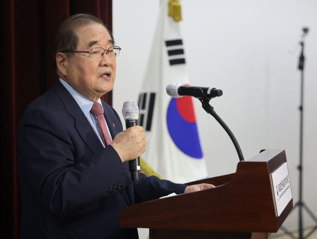 25일 오후 서울 서대문구 국립대한민국임시정부기념관에서 열린 제23대 광복회장 선거에서 당선된 이종찬 전 국가정보원장이 발언하고 있다. 연합뉴스