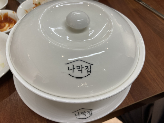 나막집이 새겨준 곰탕 그릇. 뚜껑이 있어 고급스럽다.