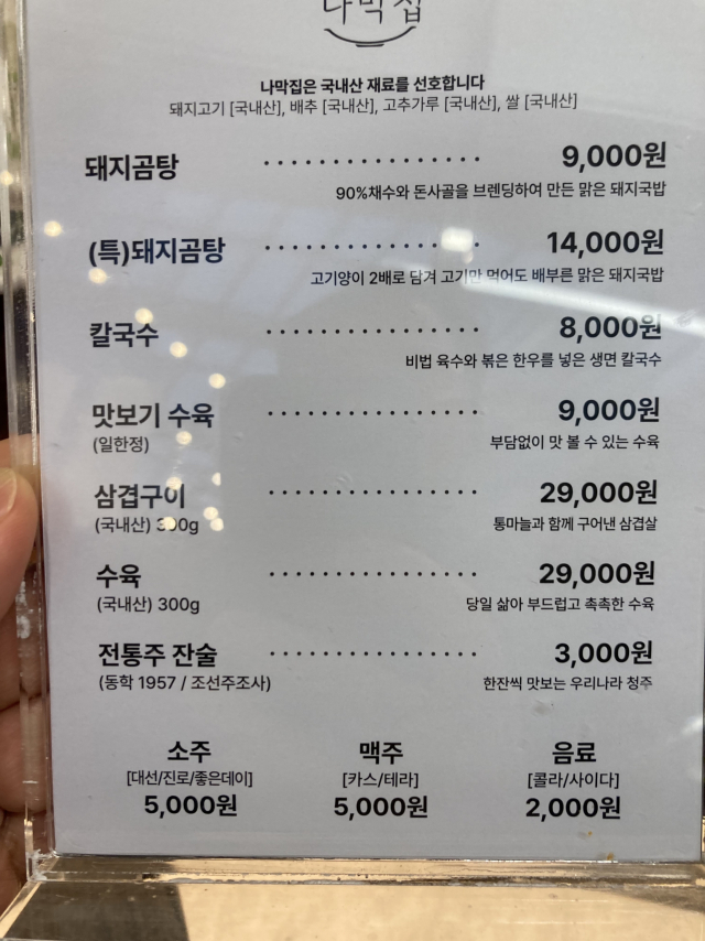 나막집 메뉴.