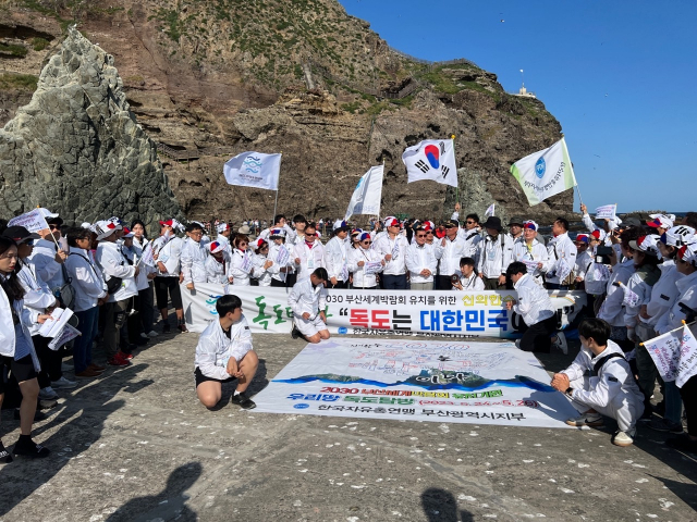 이번 탐방에는 부산 16개 지회 관계자와 유관기관·시민 등 100여 명이 참가해 울릉도와 독도 일대에서 2030 부산세계박람회 유치 기원 홍보 행사를 펼쳤다.