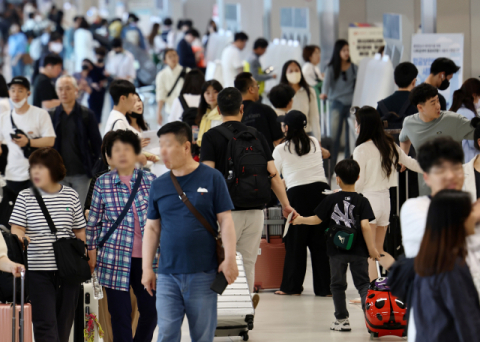부처님 오신 날 연휴를 하루 앞둔 26일 오후 김포공항 국내선 출발층이 여행객으로 붐비고 있다. 연합뉴스