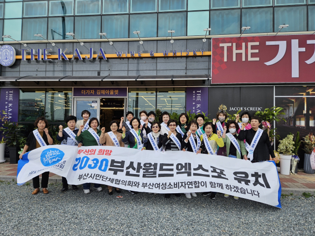 부산여성소비자연합(회장 조정희)은 최근 2030 부산세계박람회 유치를 위한 지속적인 홍보와 열기 확산을 위해 경남 김해에서 2030 부산세계박람회 유치 응원 캠페인을 실시했다.