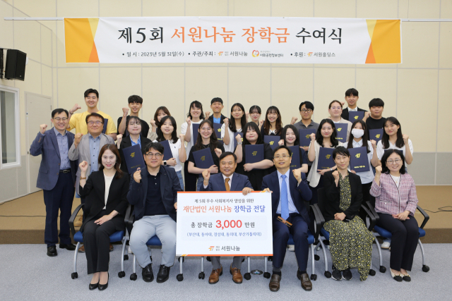 재단법인 서원나눔(이사장 강수자)은 지난달 31일 우수 사회복지사 양성을 위한 목적으로 부산 5개 대학(경성, 동아, 동의, 부산가톨릭, 부산대)의 사회 복지 관련 전공 학생 20명에게 총 3000만 원의 장학금을 전달했다.