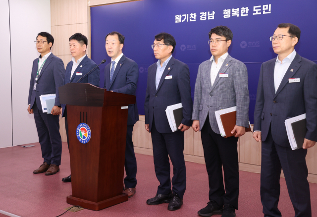경남도 관계자들이 1일 도청 브리핑룸에서 ‘경남 원전산업육성 종합계획’에 대해 설명하고 있다. 경남도 제공