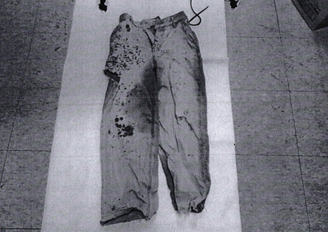 ‘부산 돌려차기’ 사건 DNA 감정서에 첨부된 청바지 사진. 안쪽 허리밴드와 허벅지 부위 등에서 가해자 DNA가 검출됐다. 피해자 제공