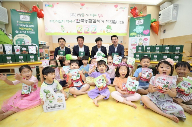 농협은 2일 서울 중구 농협중앙회 어린이집에서 한국농협김치 어린이김치 출시를 기념해 특별시식과 나눔행사를 실시했다.