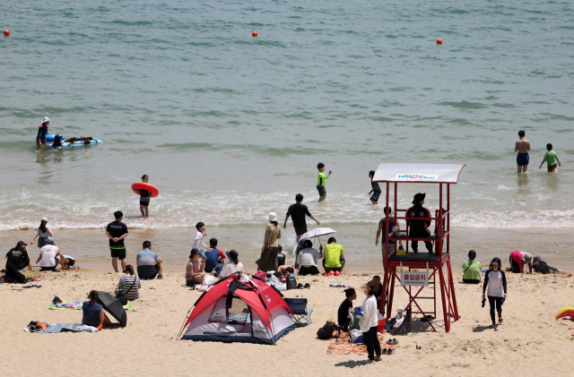 4일 오후 부산 해운대구 해운대해수욕장이 부분개장 후 첫 주말을 맞아 붐비고 있다. 연합뉴스