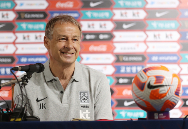 위르겐 클린스만 한국 축구대표팀 감독이 5일 오전 서울 종로구 축구회관에서 6월 페루, 엘살바도르와의 평가전에 나설 선수 명단을 발표하고 있다. 클린스만호는 16일 부산아시아드주경기장에서 페루와, 20일 대전월드컵경기장에서 엘살바도르와 평가전에 나선다. 연합뉴스