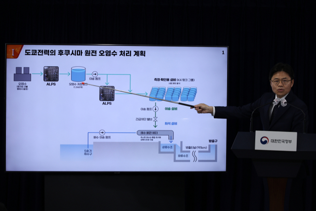 후쿠시마 원전 오염수 전문가 현장 시찰단 단장인 유국희 원자력위원회 위원장이 지난달 31일 오전 서울 종로구 정부서울청사에서 열린 도쿄전력의 후쿠시마 원전 오염수 처리계획을 발표하고 있다. 연합뉴스