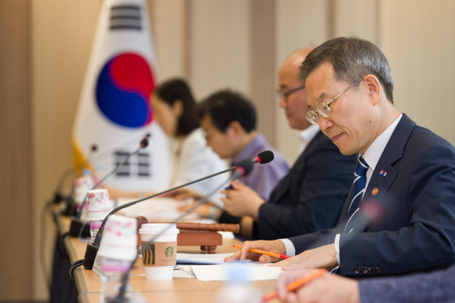 이종호 과학기술정보통신부 장관이 7일 오전 서울 종로구 광화문교보빌딩 국가과학기술자문회의 대회의실에서 열린 '제39회 생명공학종합정책심의회' 를 주재하고 있다. 과기정통부 제공