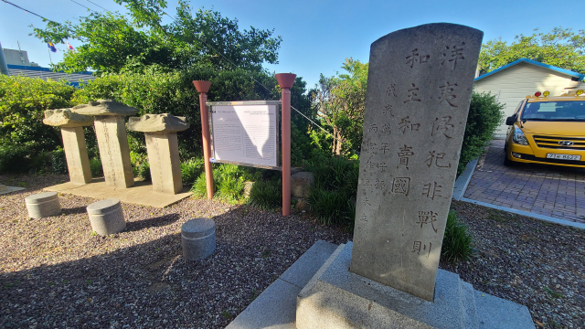 외양포 포진지 역사안내소 바로 옆에는 ‘사령부 발상지지’ 건립비가 있다. 일본군이 외양포에 주둔한 사령부 부대를 기념하기 위해 1936년 세웠다. 건립비는 일제 패망 뒤 마을로 다시 돌아온 주민들이 발견했는데, 구덩이에 파묻혀 있었다고 한다.