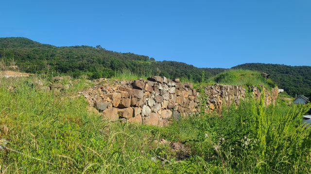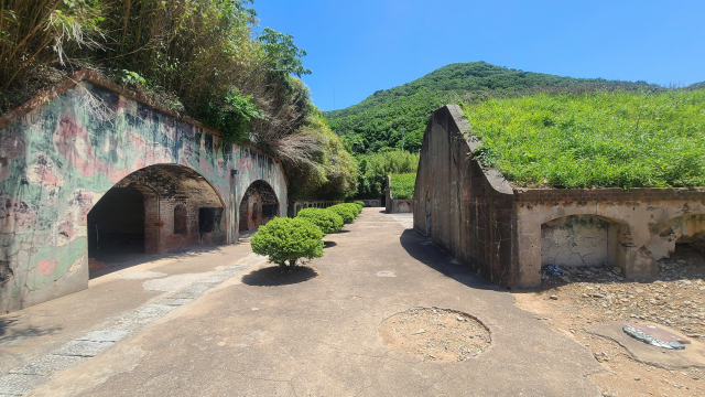 일본군이 포를 설치했던 포진지. 포진지에는 280mm 유탄포 포대터 3곳이 남아 있다. 1곳당 2문의 포가 설치됐다. 유탄포는 이탈리아제로 2차 대전 이후 미군이 가져갔다고 한다. 일본군은 사거리가 8km인 유탄포로 대한해협을 지나는 러시아 함대에 위협을 가하고 군사 요충지인 진해만 외곽을 보호했다.