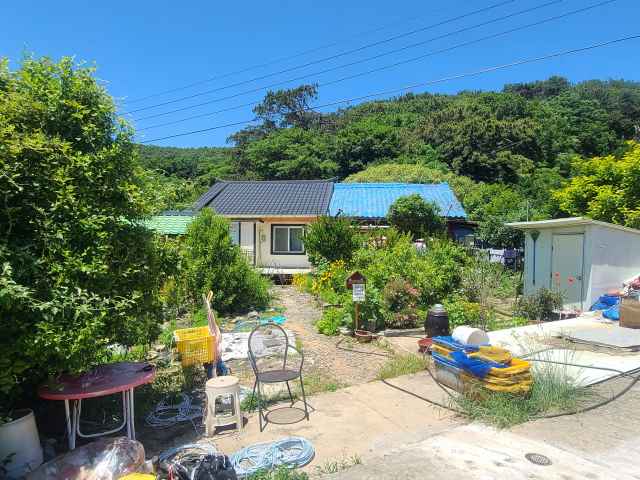 하나의 건물인데 지붕 색깔이 다른 집. 지붕 색깔이 다르다는 건 한 건물에 서로 다른 가구가 살고 있음을 나타낸다. 외양포마을은 장교 막사, 사병 내무반 등 군사 시설로 쓰인 큰 건물이 민간에 분할 임대되면서 한 건물을 여러 가구가 나눠 쓰고 있다. 사병 내무반이었던 건물에는 무려 4가구가 살고 있다고 한다.