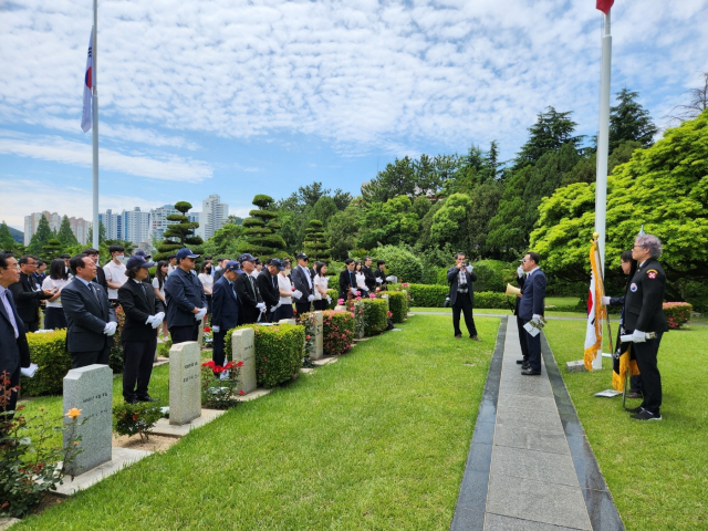 대한민국 카투사부산전우회(회장 이태재)는 지난 6일 제68회 현충일을 맞아 유엔기념공원에서 50여 명의 전우들이 한국전에 참전해 희생된 카투사 1기 참전용사를 기리는 추모 행사를 가졌다.