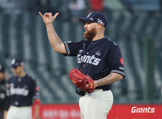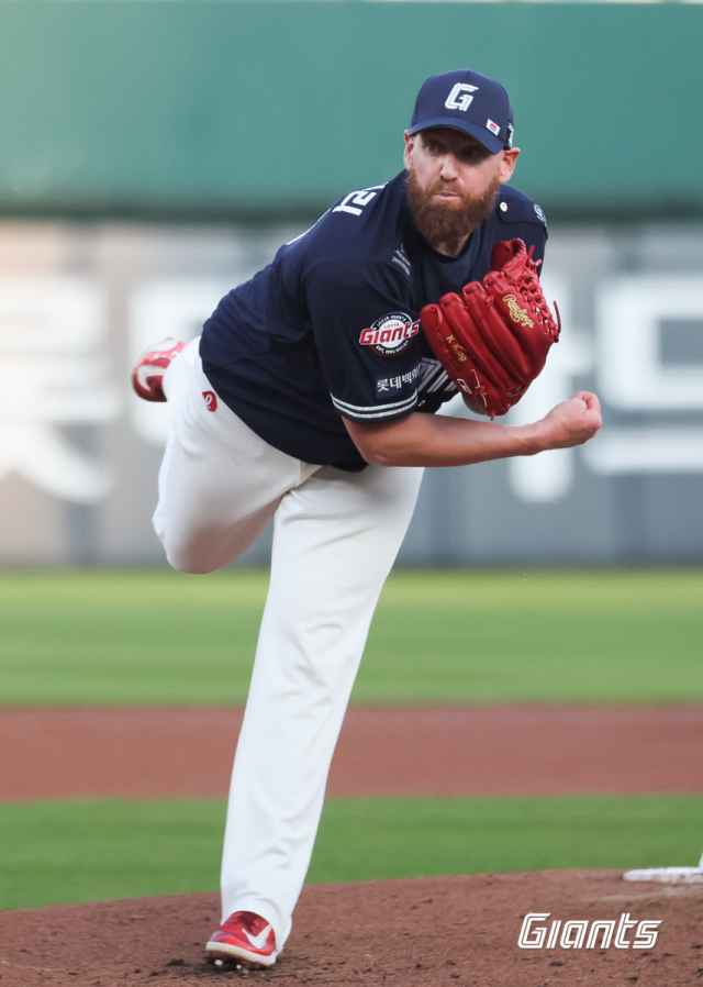 롯데 자이언츠 투수 댄 스트레일리는 8일 부산 사직구장에서 열린 KT 위즈와의 경기에서 5이닝 5실점 8피안타를 기록한 뒤 마운드를 내려갔다. 롯데 자이언츠 제공